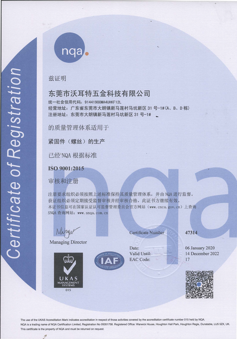 主营产品 | 螺丝,螺母,CNC零部件,法兰螺栓,双头螺栓,汽车螺栓,轮毂螺丝,梅花螺丝,内六角螺丝,车灯螺丝,法兰螺母,车轮螺母,焊接螺母等 | 业务类型 | 工贸一体 |